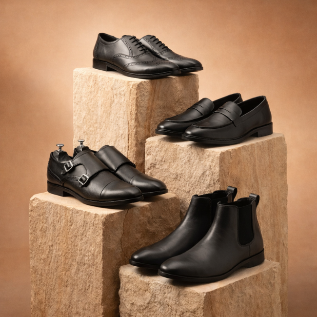 Men’s Black Leather Loafers – Formal & Smart Casual Slip-On Shoes