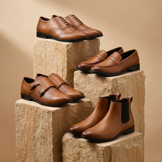 Men Tan Brogue Formal Leather Shoes