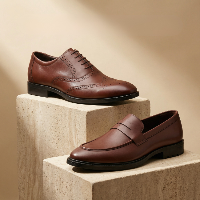 Men’s Rich Brown Penny Loafers – Timeless Leather Slip-On Shoes